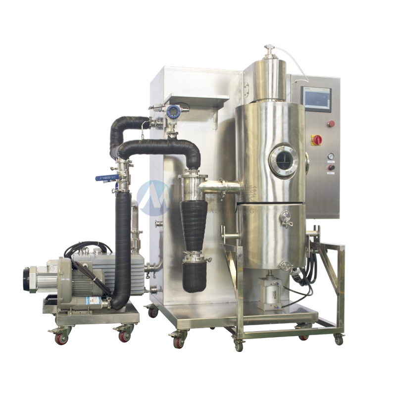 1、噴霧冷凍干燥機(jī)把噴霧干燥和真空冷凍干燥二者有機(jī)的結(jié)合起來,所需的干燥時(shí)間極短,極大的縮短了傳統(tǒng)的真空冷凍干燥時(shí)間,且干燥后的物料為粉狀的固體,經(jīng)噴霧冷凍干燥的物品,原有的生物、化學(xué)特性基本不變,易于長(zhǎng)期保存;